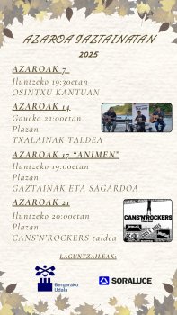 Día y hora: 21 de Noviembre, Viernes a las 20:00Dirección: Osintxu auzoaPrecio: 0.00 €Osintxu auzoko "Azaroa Gaztainatan" egitarauaren barnean antolatutako ekitaldia