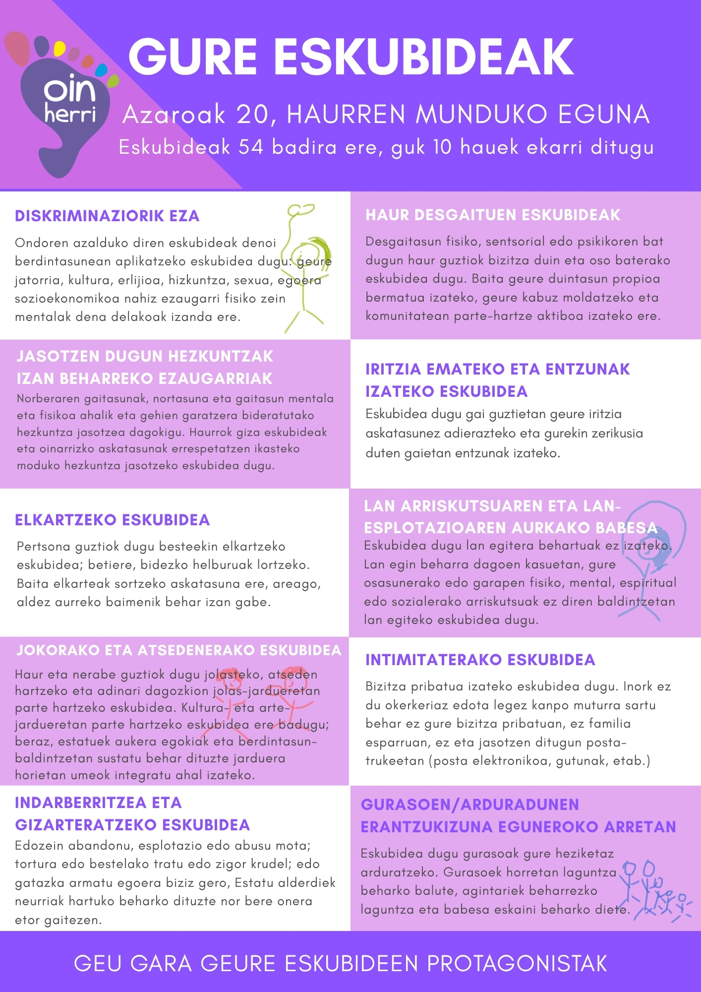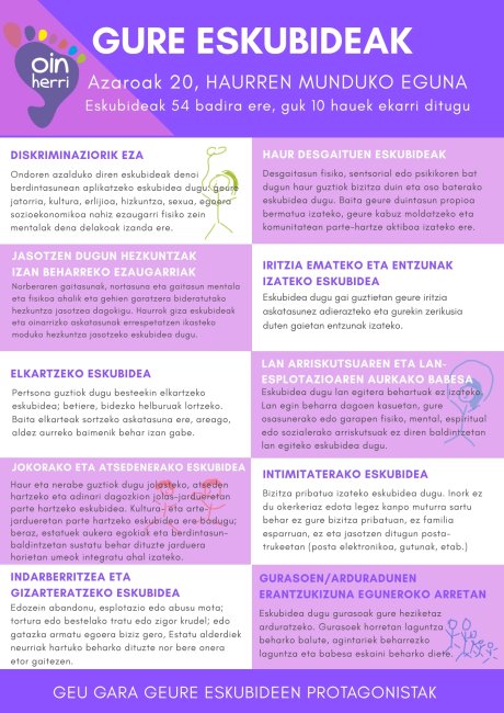Oinherri Elkarteak Haurtzaroaren Nazioarteko eguna probestu nahi du, haurtzaroaren aldeko manifestua kaleratzeko eta bertan jasotzen diren ideiekin bat egiten duen oro, bertara batzeko gonbidapena egiten du.