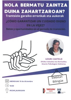 Ubicación: Irizar jauregia (Euskaldunberri aretoa) Barrenkalea 35-3.Ponente: Uzuri Castelo. EHUko irakaslea eta ikertzailea, gizarte psikologian doktorea.Organizador: Duintasuna elkarteaFecha y hora: 10 de Diciembre, Miércoles a las 18:00Precio: 0.00 €Idioma: EuskarazGazteleraz