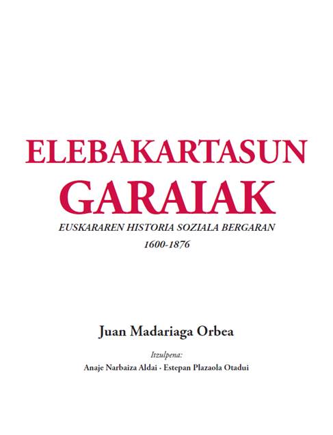 El viernes 12 de diciembre, a las 19:00 de la tarde, Juantxo Madariaga presentará en Bergara su último trabajo titulado Elebakartasun garaia. En el libro, el autor investiga la historia social del euskera en Bergara, tramo que abarca desde mediados del siglo XVII hasta 1876.