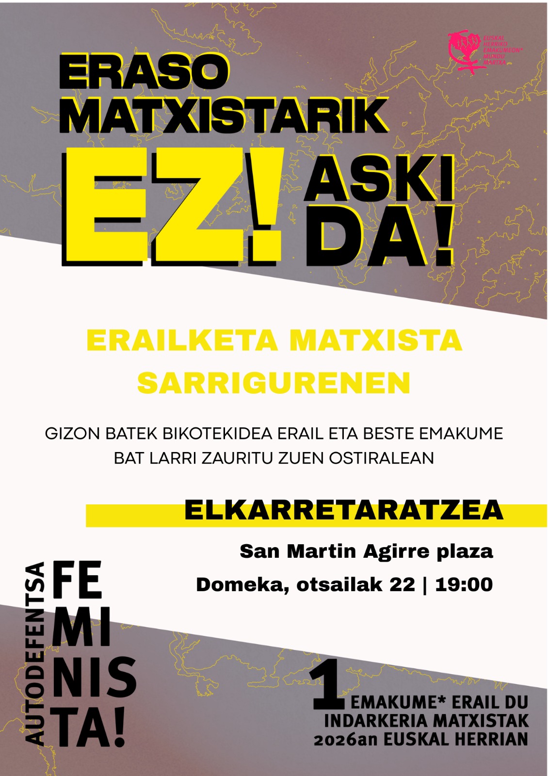 Por otro lado, se suma a las movilizaciones para denunciar este último caso de violencia machista y anima a la ciudadanía a participar en la concentración que tendrá lugar este domingo, 22 de febrero, a las 19:00 horas en la plaza San Martín.