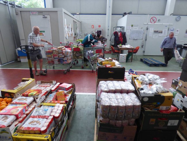 Las personas voluntarias del Banco de Alimentos y de Caritas trabajan a lo largo de todo el año en la repartición de alimentos