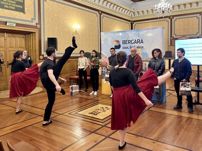 Modu honetan, Bergarako Udalak herriko dantzari historikoak ere omendu nahi izan ditu ekitaldi honetan. Bukatzeko, herriko dantzari gazteek aurreskua dantzatu diete Euskal Herriko txapeldun berriei eta gainontzeko dantzari historikoei.