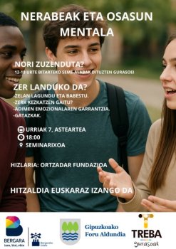 Bergarako Udalak, Ortzadar Fundazioaren laguntzaz, "Nerabeak eta osasun mentala" hitzaldia antolatu du. Ekimen hau 12 eta 18 urte bitarteko seme alabak dituzten gurasoei zuzenduta dago, eta helburua da nerabeen garapen emozionala hobeto ulertzen laguntzea, baita gurasoek euren seme alabei babesa eta laguntza eskaintzeko tresnak eskuratzea ere.