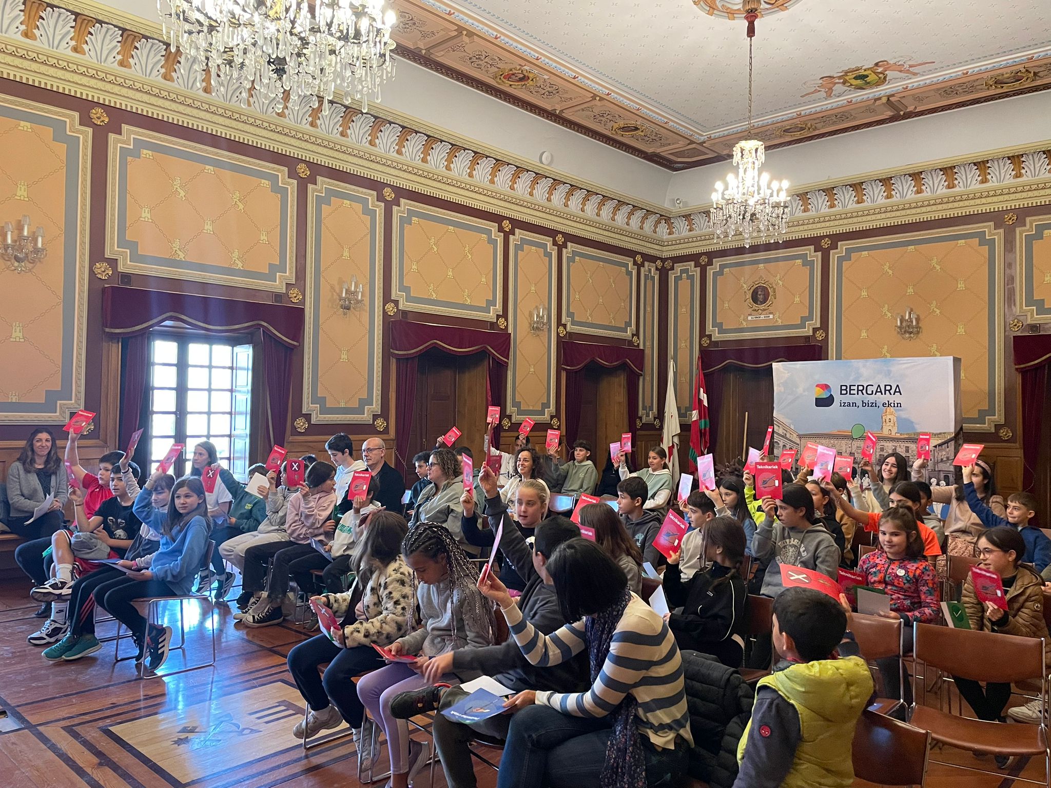Asteazken goizean 2025-2026 ikasturteko Eskola Agenda 2030 programaren hasierako udal foroa ospatu da Bergarako udalbatzan, Gorka Artola alkatea, Nagore Narbaiza teknikaria eta Bergarako ikastetxeetako ikasle ordezkariak elkartuz.