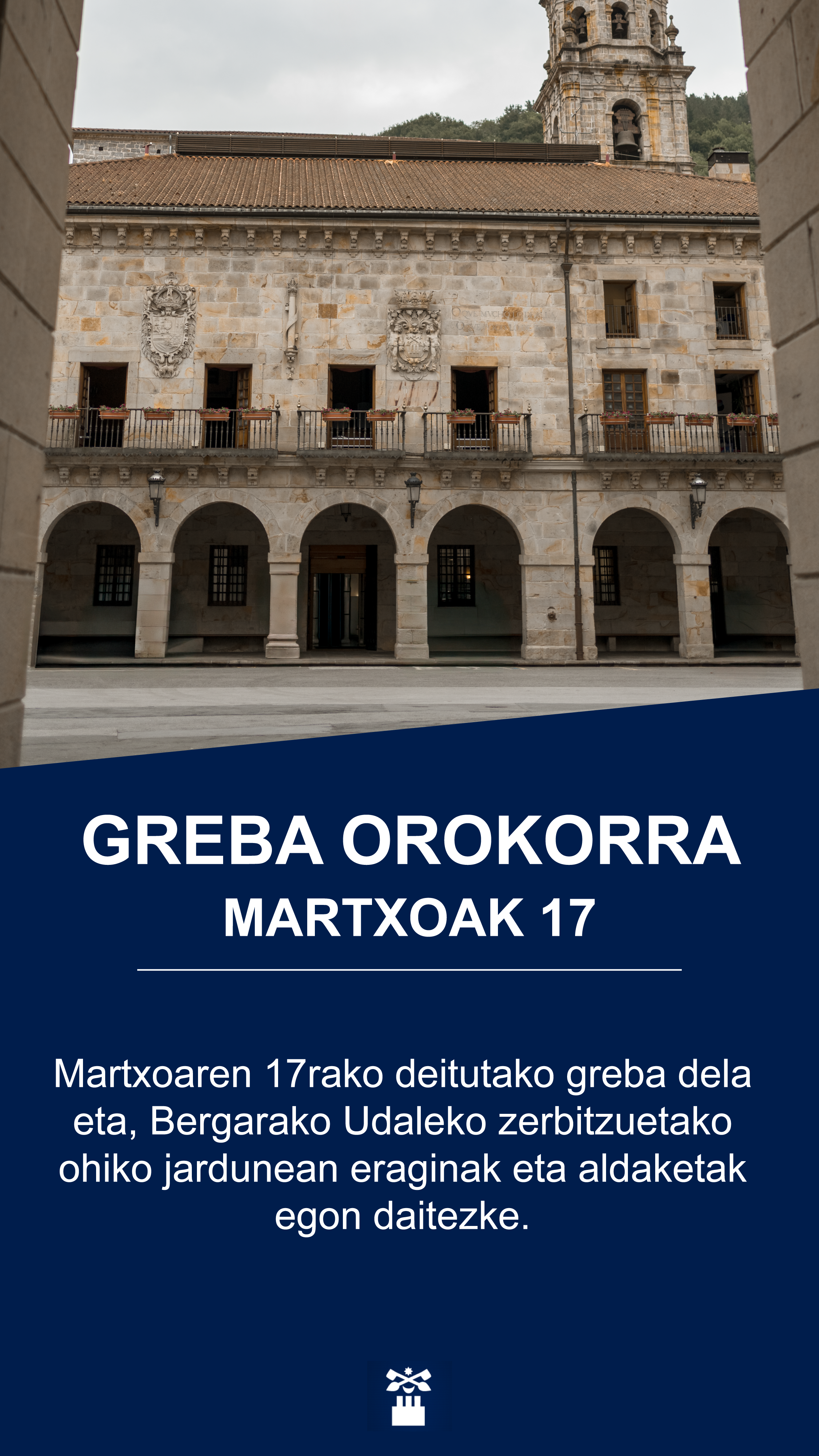 webmaster-k Or, 2026-03-13 11:40-n bidalia Martxoaren 17rako deitutako greba dela eta, Bergarako Udaleko zerbitzuetako ohiko jardunean eraginak eta aldaketak egon daitezke. Partekatu:
